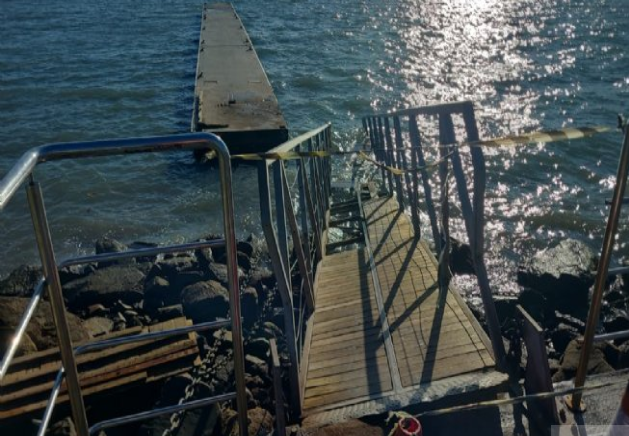 A estrutura foi danificada devido aos fortes ventos e à intensidade da maré registrados nos últimos dias. Por medida de segurança, a interdição foi realizada pela Defesa Civil, que segue acompanhando a situação.