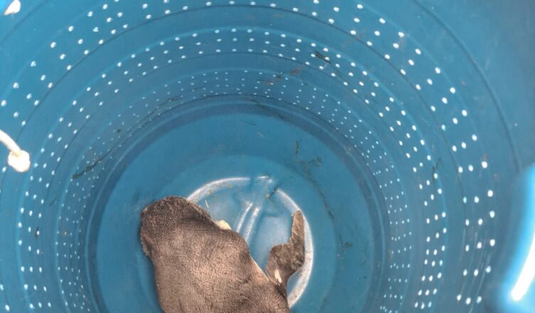 O animal, aparentemente debilitado, foi localizado por populares, na faixa de areia da praia, em frente ao quiosque 5, na avenida Geraldo Nogueira da Silva. Os populares acionaram a equipe dos bombeiros.