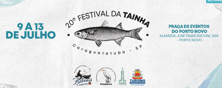Tem início nesta quarta-feira (9/7), às 12h, a 20ª edição do Festival da Tainha, que será realizado na Praça de Eventos do bairro Porto Novo, região sul de Caraguatatuba. O evento é uma realização do governo municipal, por meio da Fundação Educacional e Cultural de Caraguatatuba (Fundacc) e da Secretaria Municipal de Turismo, em parceria com a Associação dos Pescadores da Zona Sul de Caraguatatuba (Assopazca).
