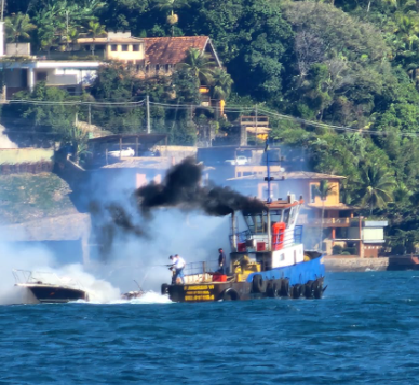 O incêndio atingiu a embarcação por volta das 12h30. Segundo o Corpo de Bombeiros, a Marinha do Brasil, através da Capitania dos Portos, em São Sebastião, prestou toda assistência à embarcação. N