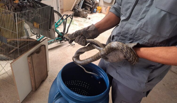 Ao chegarem ao local, os bombeiros identificaram que se tratava de uma cobra da espécie caninana, que estava na lavanderia de uma residência. A equipe realizou a captura com segurança e o animal, que não apresentava ferimentos, foi solto em uma área de mata adequada ao seu habitat natural.