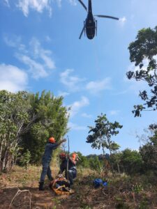No entanto, devido à complexidade do terreno, foi acionado o helicóptero Águia da Polícia Militar, que se tornou a única opção viável para retirar a vítima com segurança. Após horas de trabalho, a vítima foi içada pelo helicóptero, em uma manobra que exigiu precisão e perícia de todos os envolvidos.