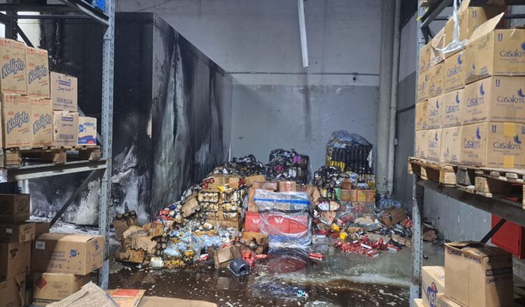 Incêndio atingiu estoque do Supermercado Semar, em Caraguatatuba, na madrugada de quinta-feira