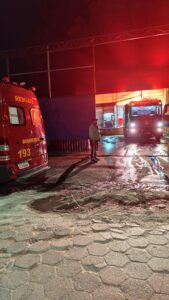 Ao chegarem ao local, os bombeiros se depararam com chamas e intensa fumaça provenientes do setor de estoque do estabelecimento. A equipe atuou rapidamente no combate ao fogo, utilizando água para extinguir as chamas e controlar a situação.
