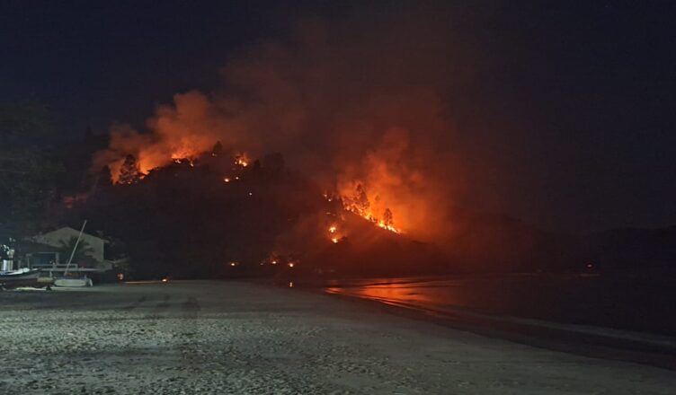 Incêndio na Tabatinga, na divisa entre Ubatuba e Caraguatatuba. Fotos e vídeo dos incêndios foram cedidas pelo Corpo de Bombeiros