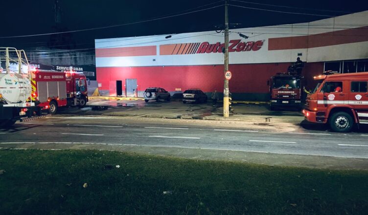 Os bombeiros foram acionados por volta das 3h50 pela viatura de policiamento que se deparou com um incêndio no telhado da loja Auto Zone, uma tradicional loja de autopeças, situada na Praça Primeiro Centenário, nº 49, no bairro Indaiá, no trevo de acesso ao município.