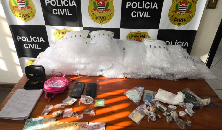 - Foi presa em flagrante A.D.S., em cuja residência foram localizados aparelhos celulares, valores em dinheiro em espécie, um caderno contendo anotações de contabilidade relacionadas ao tráfico, além de entorpecentes como ecstasy, maconha e cocaína.
