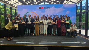 Foto Capa: Cofundadora e Diretora Executiva do Instituto Conservação Costeira, advogada Fernanda Carbonelli, recebe o prêmio SP Carbono Zero 2025