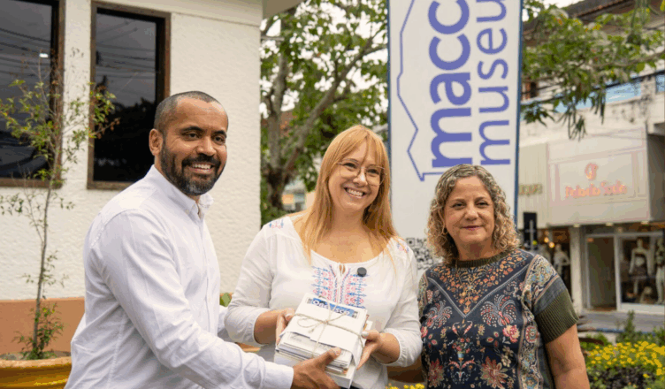 Adba Cuba, presidente da Fundacc; Marília Marton, secretária da Cultura, Economia e Indústria Criativas do Estado de São Paulo; e a assessora técnica do Polo Cultural Profª Adaly Coelho Passos, Edna do Espírito Santo de Assis. Foto: Hugo Labanca/PMC