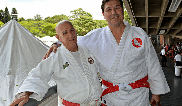 Foto Capa: Mestre Josino (à esquerda) e Aurélio Miguel, campeão olímpico e um dos maiores judocas brasileiros, durante um evento em 2017