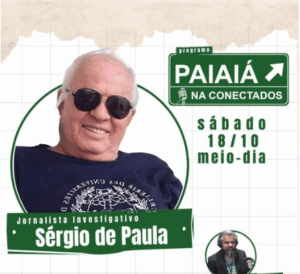 O jornalista Sérgio de Paula, de Caraguatatuba, será o convidado e entrevistado especial do programa PAIAIÁ, na Rádio Conectados, deste sábado, dia 18, às 12 horas, com apresentação de Carlos Silvio.