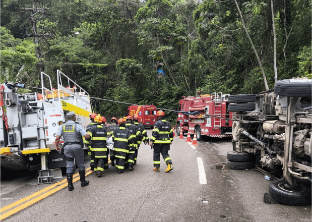 O Corpo de Bombeiros de São Sebastião foi acionado para atender o acidente de trânsito, às 10h40, na Rio-Santos, no trecho de serra, entre os bairros Boiçucanga e Maresias, na Costa Sul de São Sebastião.
