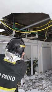 A corporação informou que a explosão ocorreu entre o forro e a laje próximo a entrada do elevador no térreo. Só uma pessoa estava no prédio no momento da explosão. Não houve vítimas.
