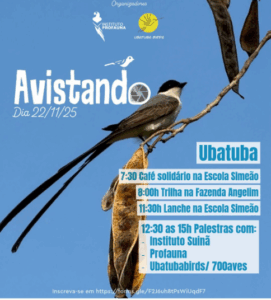 Um programa muito bacana para quem está aproveitando o feriado da Consciência Negra no Litoral Norte Paulista: o Instituto Profauna e o Ubatuba Birds promovem neste sábado, dia 22, o Avistando 2025, um dia de observação de aves e palestras.