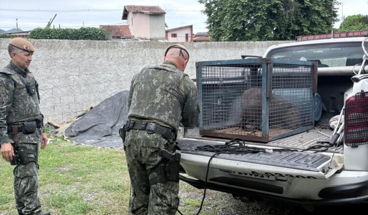 Uma capivara (Hydrochoerus hydrochaeris) foi capturada na tarde de ontem, dia 05, pela Polícia Militar Ambientalno bairro Jardim Gaivotas, no município de Caraguatatuba. A ação ocorreu após solicitação de um morador, que informou a presença do animal no quintal de sua residência.
