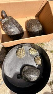 Na manhã desta sexta-feira, dia 16, em São Sebastião, a Polícia Militar Ambiental atendeu a uma denúncia oriunda do Ministério Público Estadual, aprendeu quatro exemplares de tigre-d’água (Trachemys scripta elegans), espécie exótica da fauna silvestre, mantidos em cativeiro sem a devida permissão, licença ou autorização da autoridade ambiental competente.