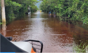 A equipe do SAMU SIV1 chegou ao local, mas não conseguiu acessar direto com a ambulância em razão da inundação que afetou as passagens de acesso à Aldeia Rio Silveira, em Boracéia, na Costa Sul do mugido. Em uma parceria integrada com o apoio da Defesa Civil, os profissionais do SAMU conseguiram chegar até a parturiente com uma caminhonete 4×4 e utilizando um bote inflável.