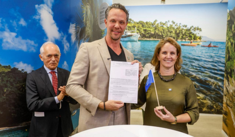 A Embratur e o Instituto Ambientes em Rede (IAR) firmaram um Acordo de Cooperação Técnica (ACT) para promover destinos turísticos brasileiros com o selo internacional Bandeira Azul. A parceria fortalece a imagem do Brasil no mercado global como destino comprometido com a sustentabilidade. O documento foi assinado durante a Galeria Visit Brasil Oceano, que aconteceu em Lisboa, Portugal, encerrada no domingo (1º).