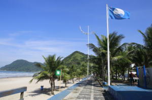 No Litoral Paulista, apenas a praia do Tombo no Guarujá possui a certificação Bandeira Azul. A Praia do Tombo, em Guarujá, recebeu a certificação em 2025 pela 16ª vez consecutiva, o selo internacional Bandeira Azul, que certifica destinos turísticos comprometidos com a preservação ambiental, segurança, qualidade da água, infraestrutura e educação ambiental. Três marinas conquistaram o prêmio em 2025: Iate Clube de Santos, Voga Marine e Marina Kauai, ambas em Ubatuba.