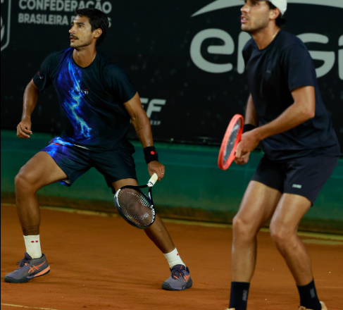Igor Marcondes e Eduardo Ribeiro enfrentam a dupla portuguesa Jaime Faria e Henrique Rocha, nas semifinais. Foto capa: reprodução Site ADK Tennis/Luiz Cândido
