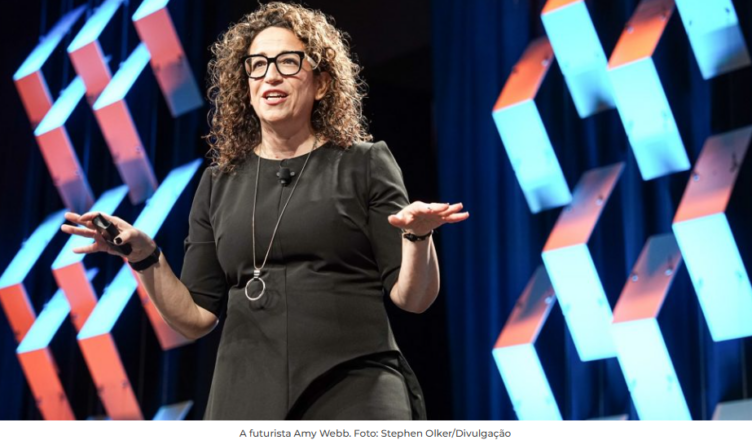 Amy Webb, de 52 anos, é uma pesquisadora de tendências e professora na NYU Stern School of Business, em Nova Yorque. Ela é CEO do Future Today Strategy Group e apresenta anualmente o Tech Trends Report, que reúne tendências da tecnologia e áreas do conhecimento que serão profundamente transformadas em cada ano.