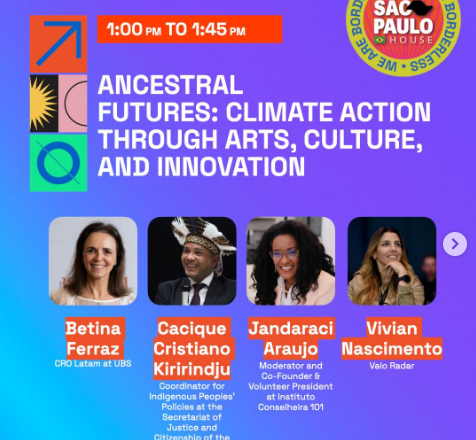Como coordenador de Políticas para os Povos Indígenas, da Secretaria da Justiça e Cidadania do Estado de São Paulo, Cristiano kiririndju participa do painel “Ancestral Futures: Climate Action Through Arts, Culture and Innovation” (“Futuros Ancestrais: Ação Climática Através das Artes, Cultura e Inovação”), levando ao palco internacional a visão dos povos indígenas sobre sustentabilidade, preservação ambiental e o papel dos saberes ancestrais na construção de soluções para os desafios climáticos do presente e do futuro.
