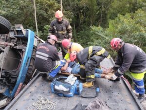 As equipes do Corpo de Bombeiros e da concessionária responsável pela via foram rapidamente acionadas para atender à ocorrência. Ao chegarem, encontraram o motorista preso às ferragens da cabine, exigindo uma operação cuidadosa de resgate.