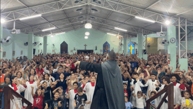O Frei Wilson Balbino, da Comunidade Católica Proclamai, de Santo Antônio da Platina(PR), cumpre agenda missionária em Caraguatatuba. O frei tem atraído centenas