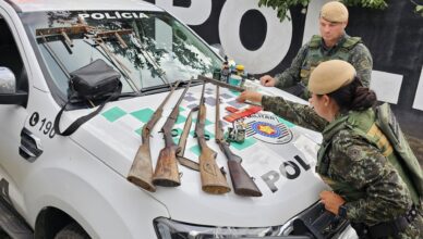 Polícia Militar Ambiental apreende armas durante blitz a caça ilegal na praia da Baleia, em São Sebastião